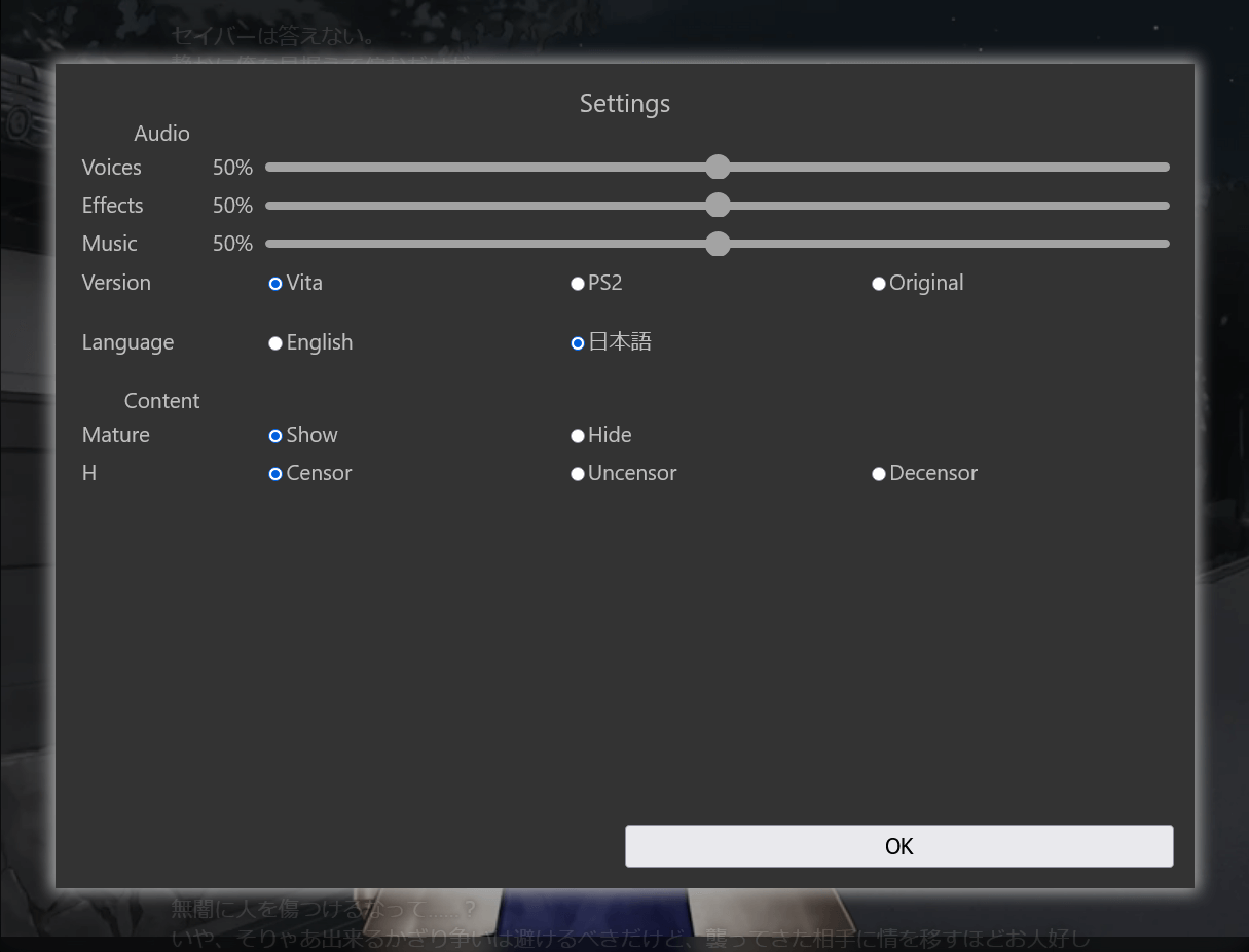 「H」と書かれた設定があることから、原作の18禁シーンも移植されている様子。
