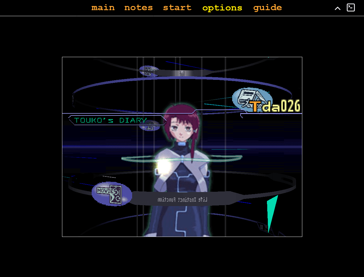 Serial experiments lainの再現サイト。PC向けダウンロード版も存在。ターミナルを意識したサイトデザインは作品の世界観に沿っている。