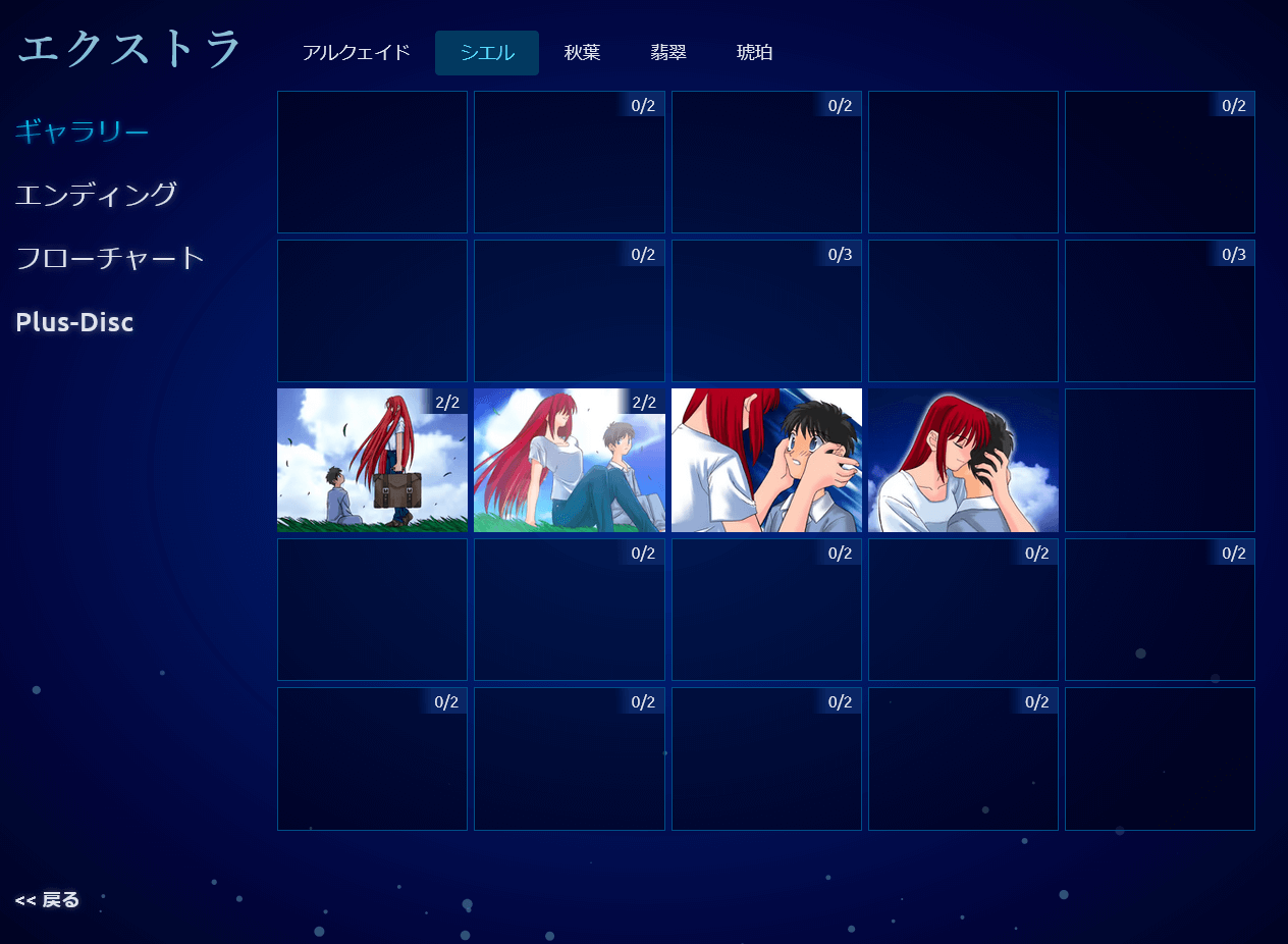 他には、解放済みのルートをフローチャートで確認することができたり、Plus-Discを閲覧できる。