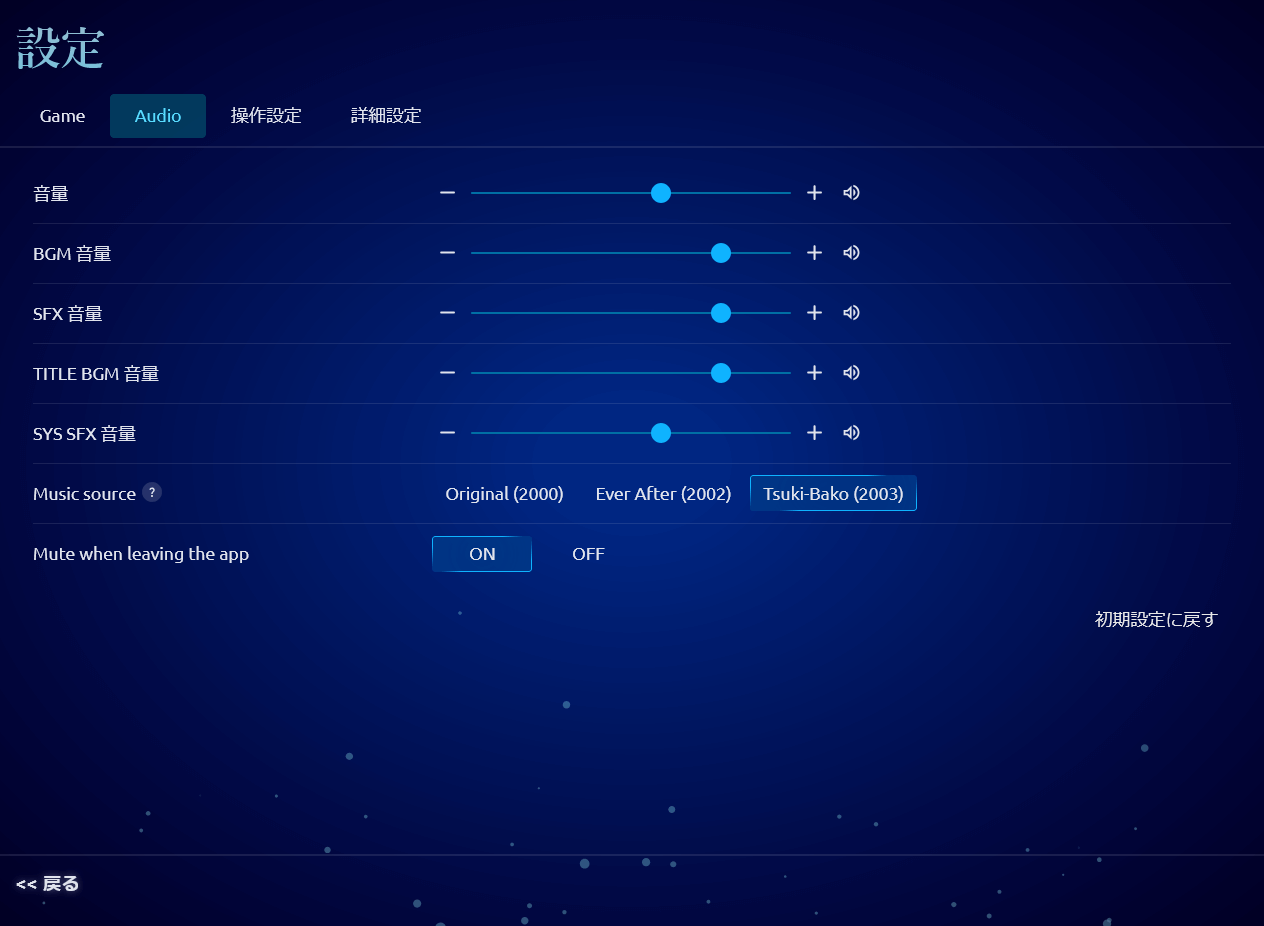 ゲーム起動時や設定項目を開いたときにゲーム中の音楽とは別に重ねてBGMが流れる時がある。