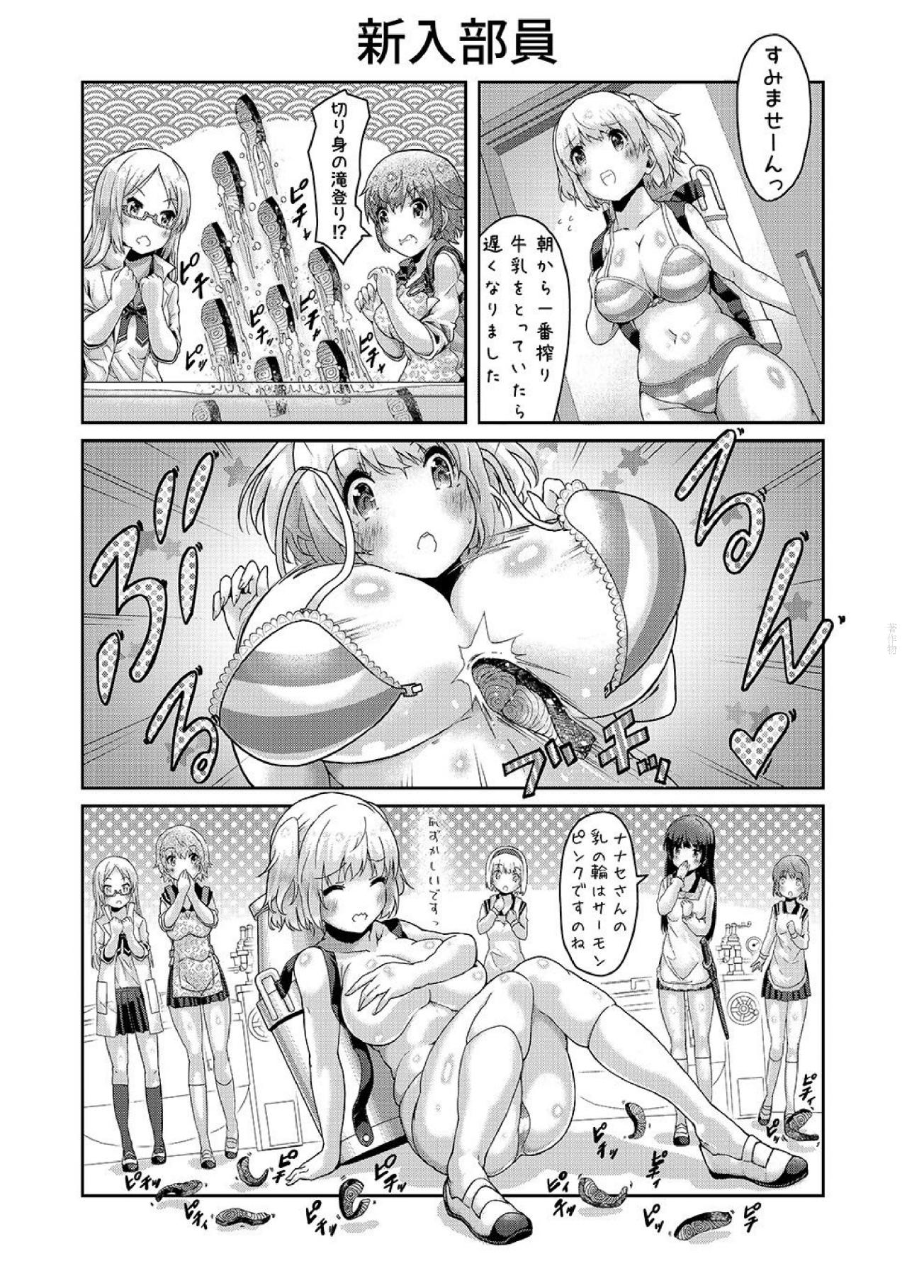 最初の方に出てくる回で、副部長が生徒に提供するシチューを煮ている大鍋に全裸で入浴するギャグがある。人によっては嫌悪感を抱く可能性のある内容かもしれないが、この作品にまともな倫理観を持ち込んでも意味がない。